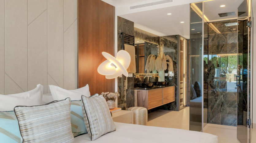 Im Inneren ist das Apartment ein Meisterwerk modernen Designs und luxuriöser Ausstattung. Es verfügt über einen offenen Wohnbereich mit raumhohen Fenstern, die die Innenräume mit natürlichem Licht durchfluten und eine atemberaubende Aussicht bieten. Die Designerküche, ausgestattet mit hochmodernen deutschen Geräten, fügt sich harmonisch in den stilvollen Ess- und Loungebereich ein. Die Immobilie verfügt außerdem über großzügige Schlafzimmer mit maßgefertigten Einbauschränken, Fußbodenheizung im gesamten Apartment sowie hochwertige Details wie ein Bang & Olufsen-Soundsystem und einen elektrischen Kamin für zusätzlichen Komfort und Stil.