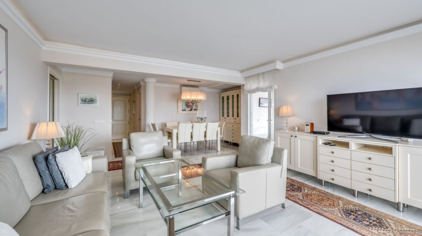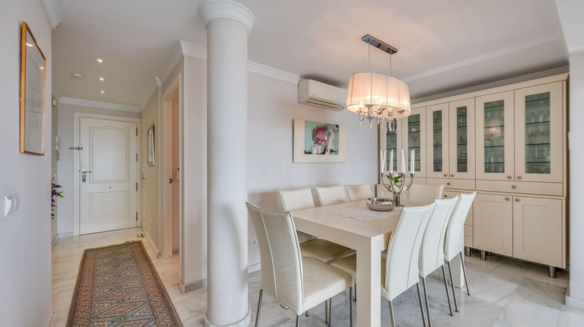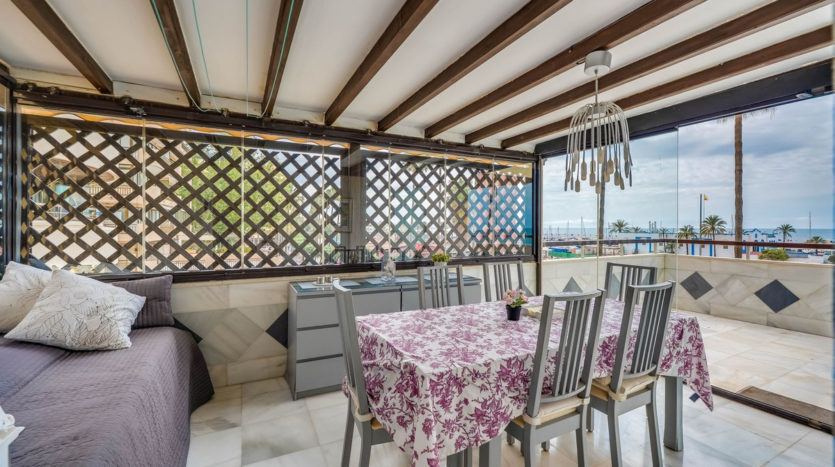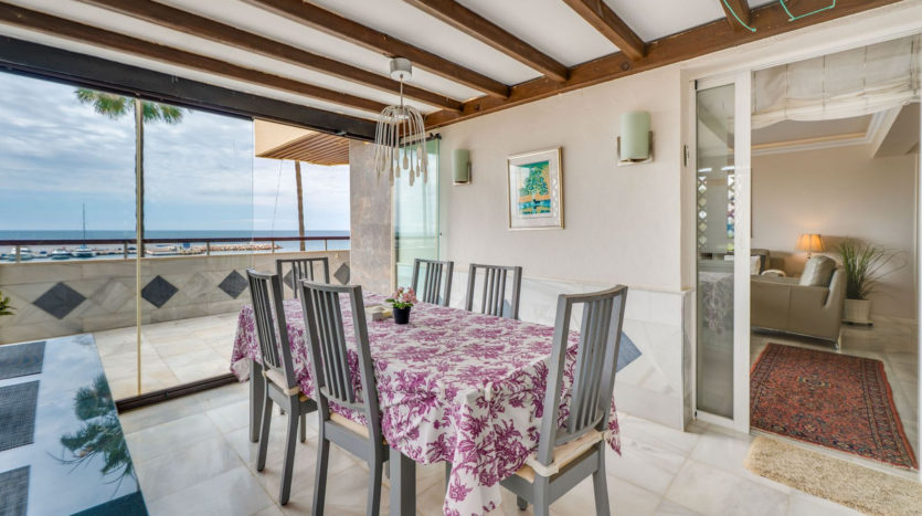 Die Immobilie wurde aus zwei Einheiten zu einem großzügigen Apartment zusammengeführt und vollständig renoviert. Sie verfügt über drei Schlafzimmer, drei Badezimmer und einen lichtdurchfluteten Wohn- und Essbereich mit Zugang zu einer beeindruckenden Terrasse von rund 49 m². Von hier genießen Sie den freien Blick auf das Mittelmeer und den Yachthafen von Marbella – ein echtes Highlight im Herzen der Stadt.