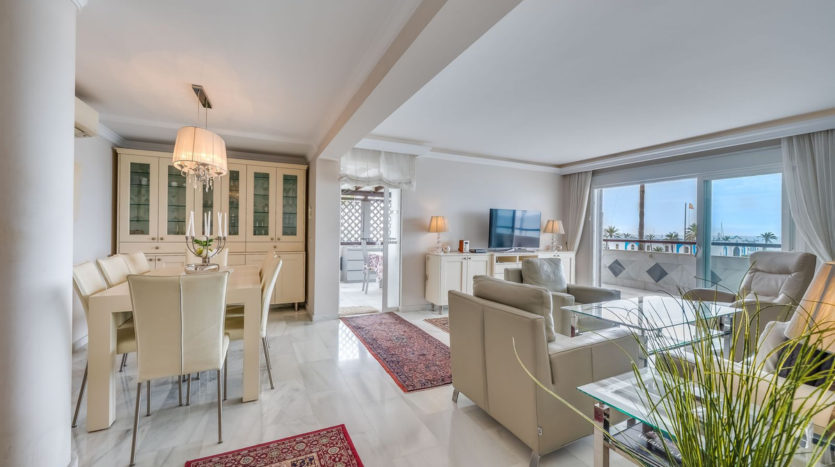 Dieses großzügige und modernisierte Apartment in bester Lage von Marbella überzeugt durch seinen direkten Zugang zur Strandpromenade und einen atemberaubenden Blick auf das Meer. Die Wohnung befindet sich in einem gepflegten Gebäude direkt an der beliebten Paseo Marítimo und bietet eine seltene Kombination aus zentraler Lage, Privatsphäre und mediterranem Lifestyle.