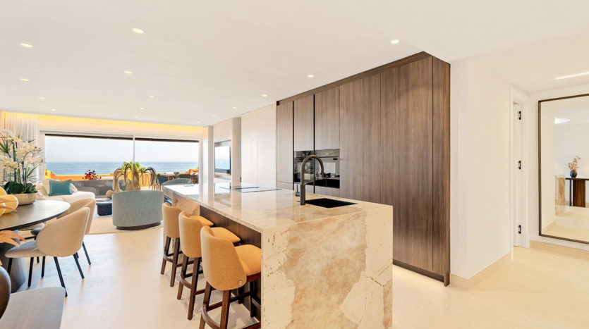 Diese vollständig renovierte Wohnung mit 4 Schlafzimmern und 4 Badezimmern ist eine außergewöhnliche Gelegenheit für all jene, die Luxus und Komfort in einer atemberaubenden Strandlage suchen. Das großzügige Wohn- und Esszimmer sowie das luxuriöse Hauptschlafzimmer mit eigenem Bad und begehbarem Kleiderschrank bieten beide direkten Zugang zur beeindruckenden, nach Süden ausgerichteten Terrasse mit Panoramablick auf das Meer.