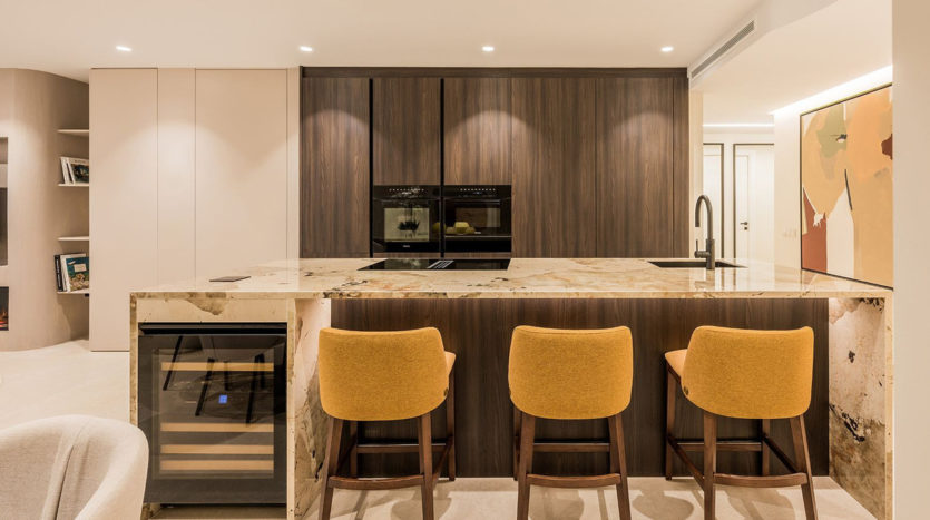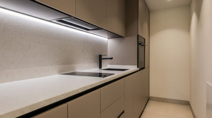 Dieses helle Apartment mit 187 m² Wohnfläche verfügt über eine brandneue, offene Designer-Küche mit hochwertigen deutschen Geräten und luxuriösen Extras, darunter ein Bang & Olufsen Soundsystem, ein elektrischer Kamin und eine freistehende Badewanne.