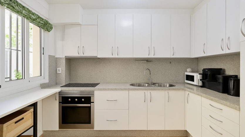 Das Apartment ist Teil einer ruhigen und vollständig eingezäunten Anlage mit Gemeinschaftspool, gepflegten Gartenbereichen und Tiefgarage. Dank der zentralen Lage sind Meer, Geschäfte, Schulen und Restaurants bequem zu Fuß erreichbar.