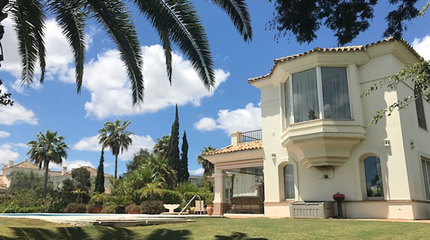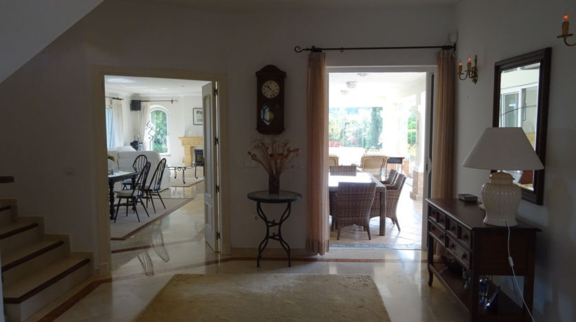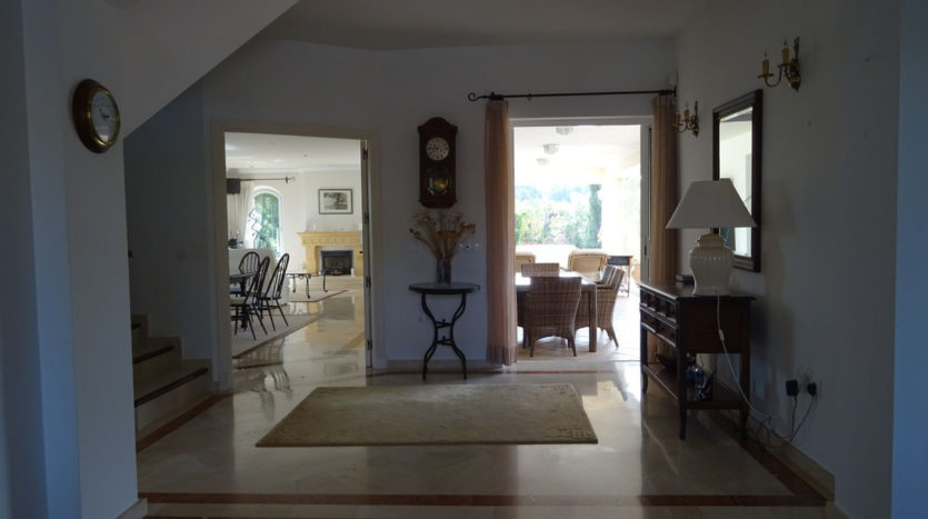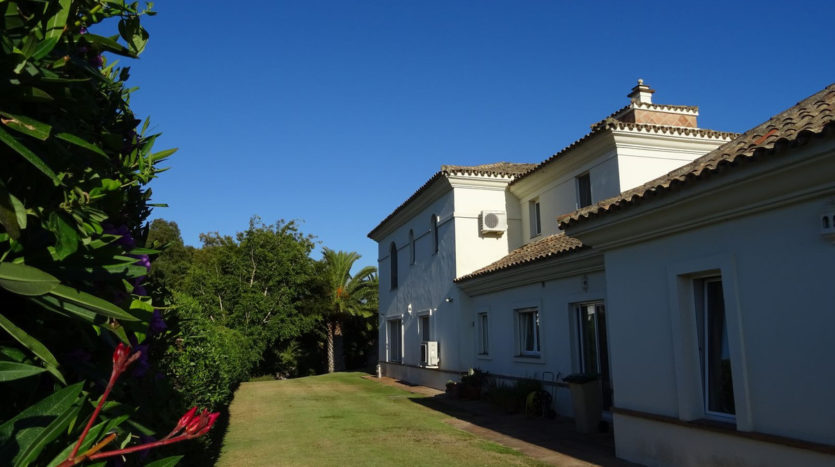 Atemberaubende, moderne Villa auf einem erhöhten Grundstück in Sotogrande Alto mit freiem Blick auf die Landschaft und die Berge. Diese Immobilie wurde nach höchsten Standards gebaut – mit Fußbodenheizung, kompletter Klimaanlage für warme und kalte Luft, doppelt verglasten Fenstern und hochwertigen Ausstattungen im gesamten Haus. Die Villa verfügt über elektrische Tore und eine Zufahrt, die hinunter zur Garage für zwei Autos und um den Haupteingang führt. Im Inneren befindet sich ein großzügiges Wohnzimmer mit Kamin, ein weiteres Wohnzimmer ebenfalls mit Kamin, ein separates Esszimmer sowie eine voll ausgestattete Küche mit Frühstücksbereich. Auf dieser Ebene gibt es außerdem ein Gästezimmer mit eigenem Bad. Alle Schlafzimmer haben Zugang zur umlaufenden Terrasse, die das Haus umgibt und zur Sonnenterrasse neben dem Pool führt. Die Schlafzimmer sind sehr geräumig, verfügen über große Badezimmer en suite und reichlich Stauraum. Das Hauptschlafzimmer bietet besonders viel Platz, einen Ankleidebereich sowie Zugang zu einer privaten Terrasse. Die Gärten sind gepflegt, mit Rasenflächen und eingewachsenen Pflanzen, und bieten einen herrlichen Blick auf die Umgebung. Auf der unteren Ebene befindet sich ein großzügiger Freizeitbereich mit Wohn- und Esszonen sowie ein Spa mit Sauna, Dusche und Bad. Alle Außenwände und das Dach der Villa sind isoliert, ebenso sind alle Fenster doppelt verglast. Die Hauptbereiche der Villa sowie der große, gepflegte Garten sind nach Süden ausgerichtet, und der Pool ist den ganzen Tag über von Sonne beschienen. Die Villa verfügt über zwei Gasboiler für die Fußbodenheizung und Warmwasser, und die Küche ist sowohl mit Gas als auch elektrisch betrieben. Der Pool misst 12 x 5 Meter bei einer Tiefe von 120 bis 210 cm. Sotogrande ist eine der elegantesten und exklusivsten Wohngegenden Südspaniens und erstreckt sich über mehr als 2.000 Hektar – von der Mittelmeerküste bis hin zu den Hügeln. Am westlichen Ende der Costa del Sol gelegen, nur 15 Minuten vom Felsen von Gibraltar und 20 Minuten von den kosmopolitischen Städten Marbella, Guadalmina und Puerto Banús entfernt. Sotogrande ist berühmt für seine erstklassigen Golfplätze, internationalen Poloturniere und den prächtigen Yachthafen mit einer erlesenen Auswahl an Wassersportmöglichkeiten. Valderrama – möglicherweise der beste Golfplatz des europäischen Kontinents und einst Austragungsort der Volvo Masters und des Ryder Cup – sowie weitere nahegelegene Plätze wie der Real Club de Golf Sotogrande, Almenara und San Roque machen die Region zu einem wahren Golfparadies. Mit seiner wunderschönen Umgebung und den spektakulären Privatanwesen bietet Sotogrande Komfort, Diskretion und Ruhe. Von herrschaftlichen Villen über Apartments direkt am Meer bis hin zu exklusiven Golfimmobilien – das Leben hier ist außergewöhnlich. Sotogrande bewahrt weiterhin seinen eleganten Stil und zieht seit jeher anspruchsvolle Klientel aus Spanien und der ganzen Welt an, und bietet für jeden etwas Besonderes – von Restaurants, Nachtclubs und Boutiquen bis hin zu Sport- und Freizeiteinrichtungen. Eine ausgezeichnete Infrastruktur mit professionellen Dienstleistungen, einer internationalen Schule und allen Annehmlichkeiten in der Nähe vervollständigt die hohe Lebensqualität.