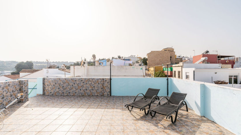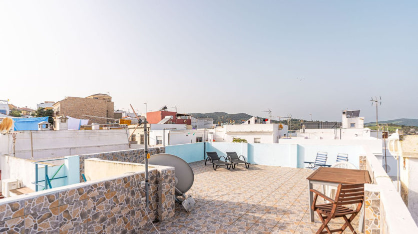 Es verfügt über ein Familienbadezimmer mit Badewanne und Toilette. Ein Schlafzimmer hat Zugang zu einer Terrasse mit Blick auf Berge und Stadt. Die separate, voll ausgestattete Küche führt in einen hübschen Innenhof. Auf der oberen Etage befindet sich eine Dachterrasse mit 360°-Blick auf die umliegenden Berge – ideal zum Grillen oder Sonnenbaden in ruhiger Atmosphäre.