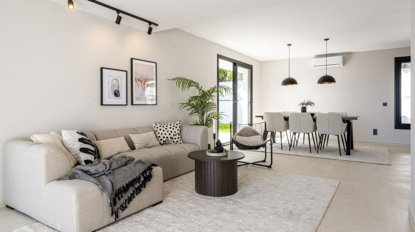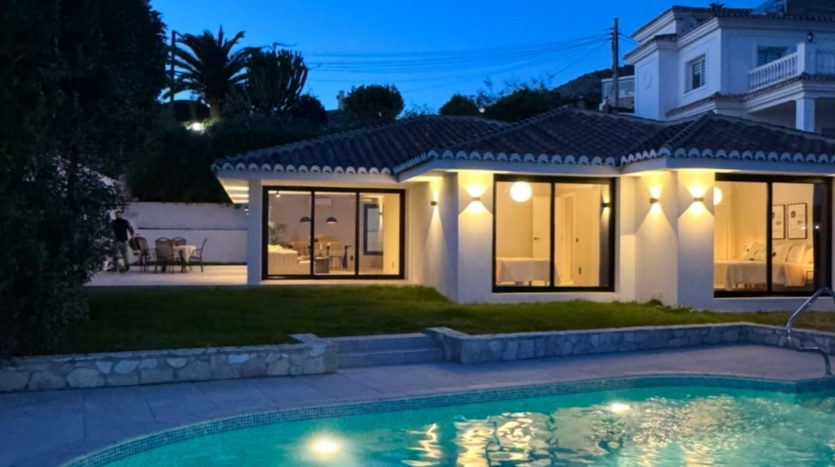 Willkommen in dieser wunderschön renovierten Villa, die 2025 fertiggestellt wurde und sich in der ruhigen und begehrten Gegend von La Capellania befindet, nur 800 Meter vom Strand, Restaurants und Strandclubs entfernt. Die Villa kombiniert skandinavisches Design mit sorgfältig ausgewählten hochwertigen Materialien und bietet eine perfekte Balance zwischen Komfort und Stil – ideal für Entspannung und gesellige Zusammenkünfte.