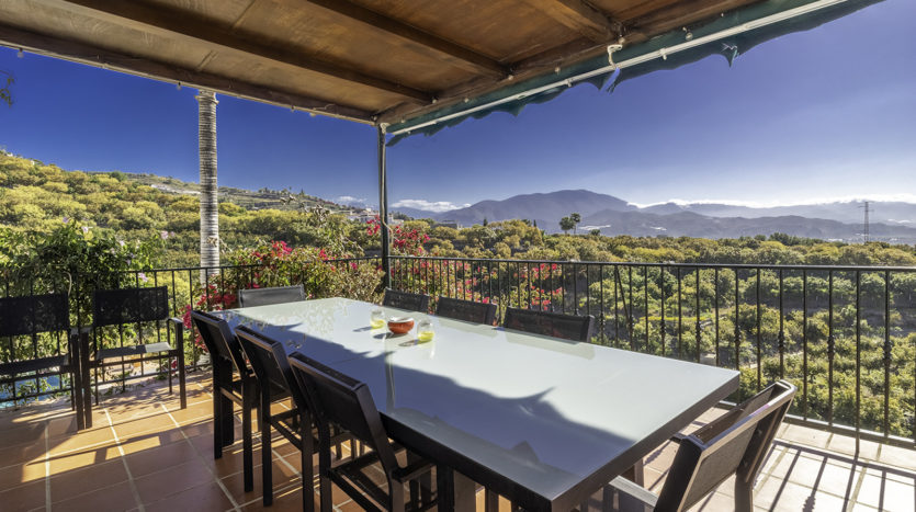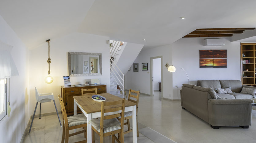 Die Villa ist optimal aufgeteilt mit einem offenen Wohnbereich, der in eine große Terrasse mit Blick auf die Berge und das Meer führt. Die Treppe aus Marmor verbindet die beiden Etagen und sorgt für einen eleganten Zugang zu den Schlafzimmern und Badezimmern.