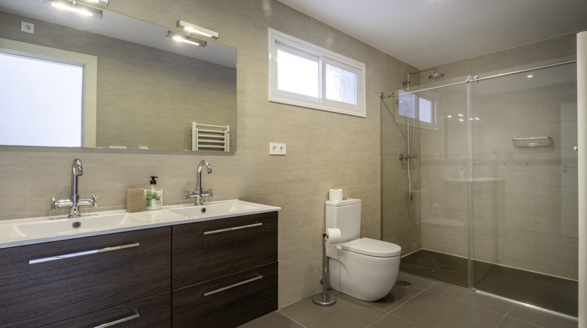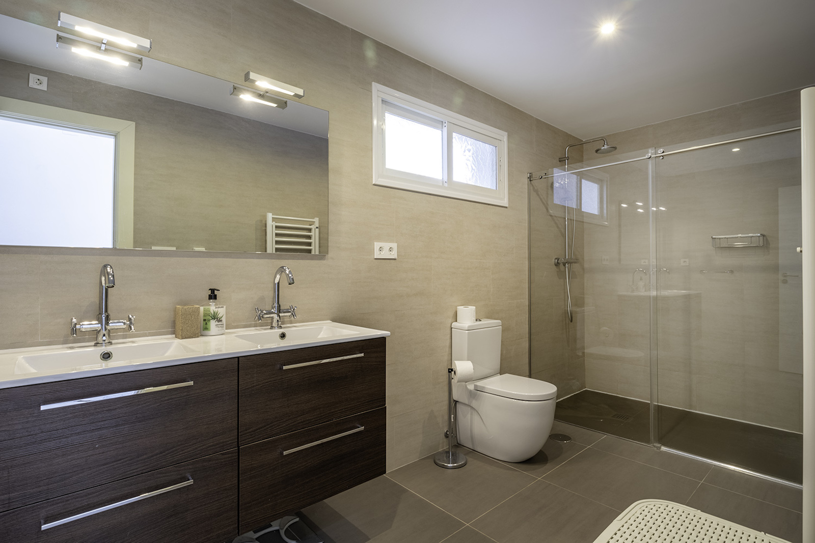 Die Villa verfügt über insgesamt 5 Schlafzimmer. Im Erdgeschoss befinden sich drei Schlafzimmer, darunter ein Schlafzimmer mit eigenem Bad. Im Obergeschoss befinden sich zwei weitere Schlafzimmer mit Zugang zu einer privaten Terrasse.