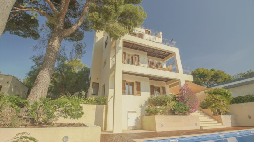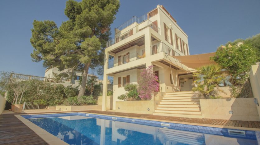 Diese einzigartige Villa bietet eine perfekte Kombination aus zeitloser Architektur, modernem Komfort und absoluter Privatsphäre, gepaart mit einem atemberaubenden Blick auf die Bucht von Palma, das Mittelmeer und die Skyline der Stadt.