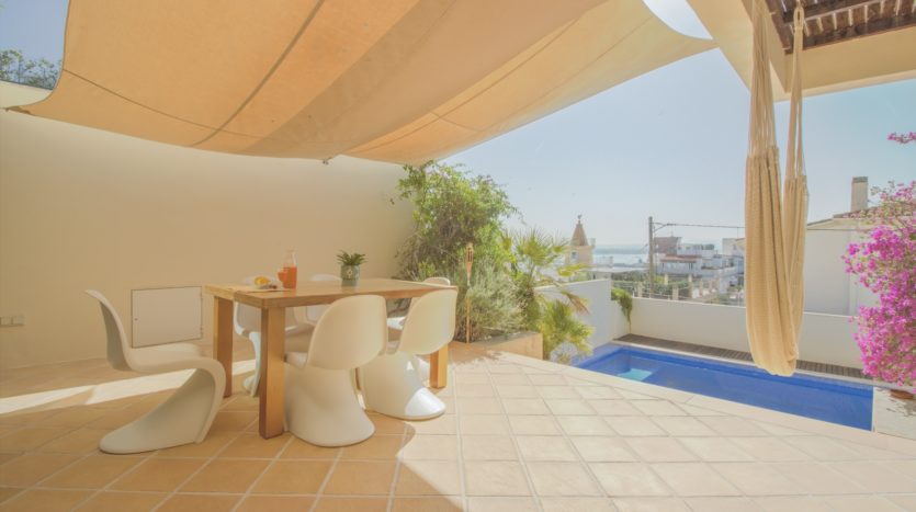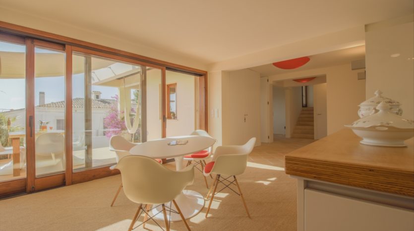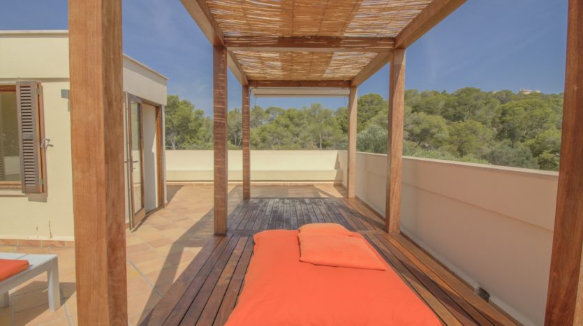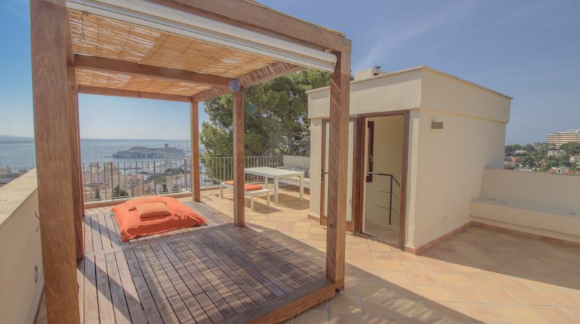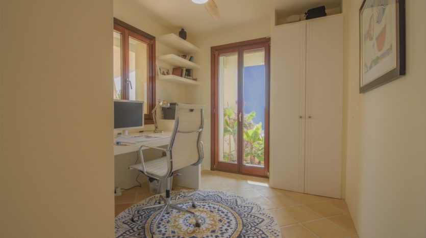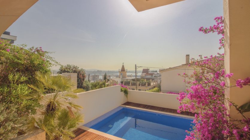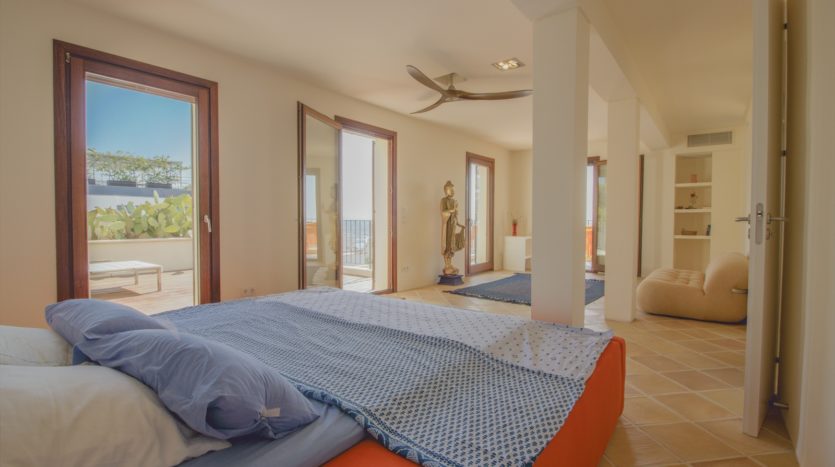 Die gesamte obere Etage ist der Master Suite gewidmet, die ein geräumiges Schlafzimmer, ein luxuriöses Badezimmer en suite, einen begehbaren Kleiderschrank sowie eine private Terrasse mit spektakulärem Blick auf das Meer und den Bellver Park bietet.
