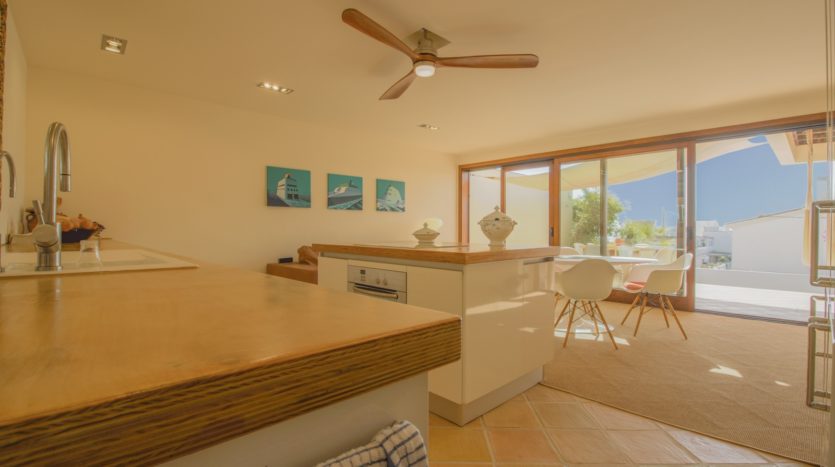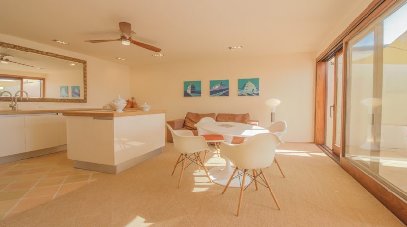 Die Hauptetage bietet eine einladende, offene Raumaufteilung, in der die exklusive Küche, das Esszimmer und der Wohnbereich nahtlos zur großzügigen Sonnenterrasse und dem Salzwasserpool übergehen. Zusätzlich gibt es zwei weitere Räume, die derzeit als Büro und gemütlicher Lese-/Aufenthaltsraum genutzt werden, aber leicht in zusätzliche Schlafzimmer oder Gästezimmer umgewandelt werden können. Ein modernes Badezimmer und ein Gäste-WC runden diese Etage ab.