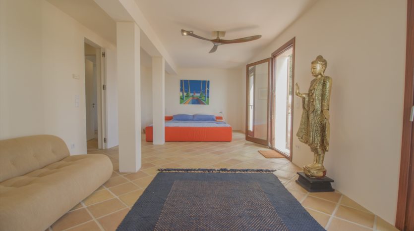Im Erdgeschoss befindet sich ein separates Gästehaus mit Schlafzimmer und Badezimmer – ideal für Gäste, Personal oder Familie. Darüber hinaus gibt es eine private Garage mit Platz für zwei Autos und direktem Zugang zum Haus.