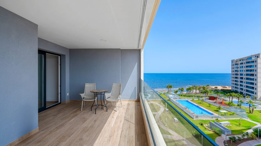 Dieses moderne Luxusapartment auf der 5. Etage in Punta Prima bietet exklusive Frontline-Lage direkt am Meer und verbindet elegantes Design mit höchstem Wohnkomfort. Mit zwei Schlafzimmern und zwei Badezimmern ist die Immobilie bezugsfertig und ideal als Ferienresidenz oder dauerhafter Wohnsitz.