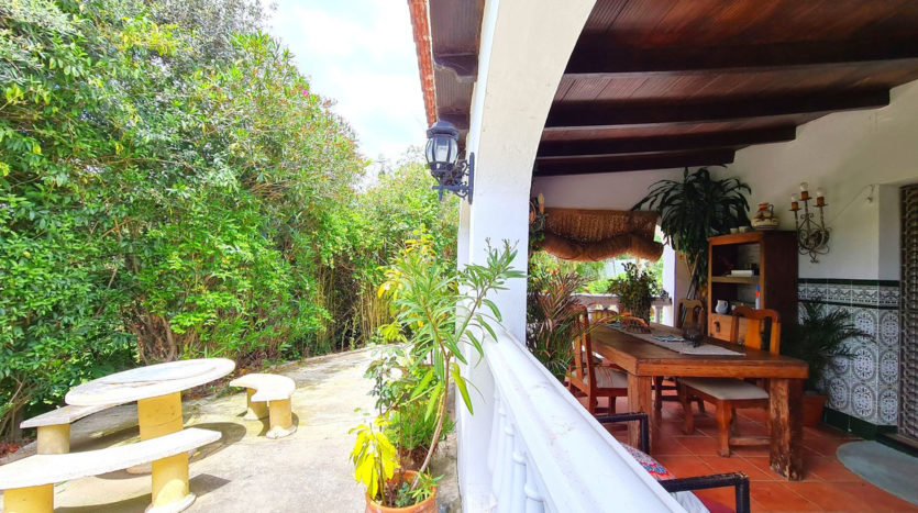 Das Haus bietet eine große überdachte Terrasse, ein geräumiges Esszimmer mit integrierter, voll ausgestatteter Küche sowie ein zentrales Wohnzimmer mit Zugang zur Terrasse. Drei Schlafzimmer und ein großzügiges Badezimmer mit Whirlpool runden das Angebot ab. Eine ideale Gelegenheit, inmitten der Natur in einem schönen, freistehenden Haus zu leben – ein Besuch lohnt sich!