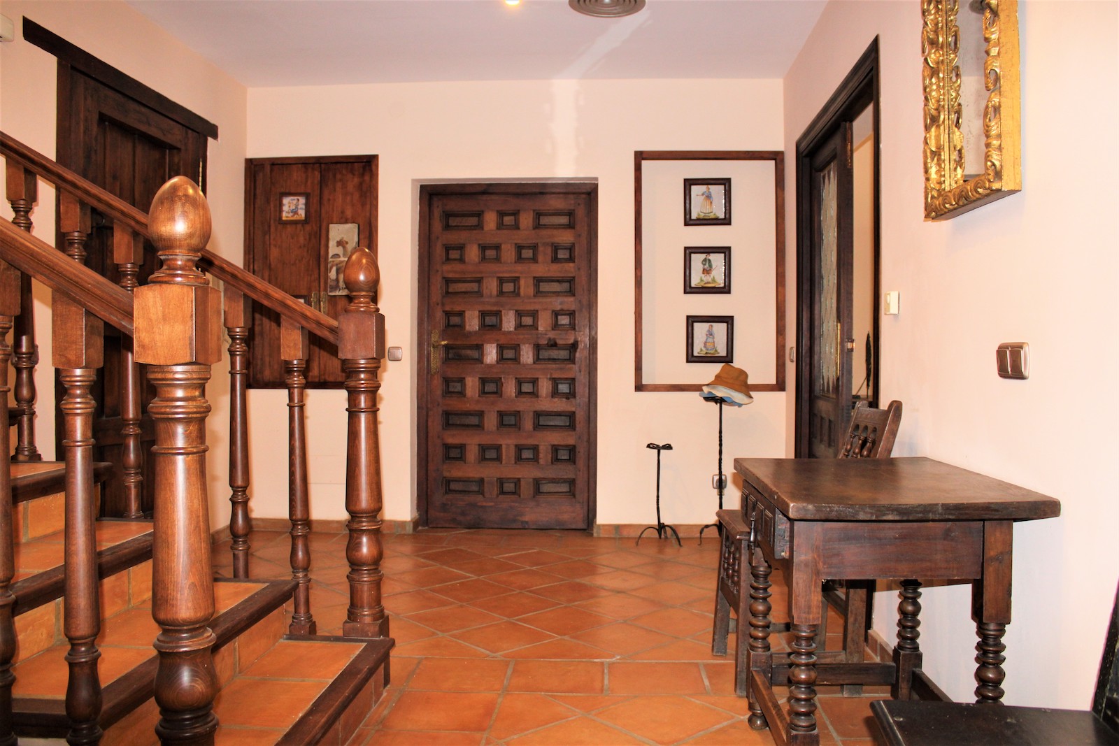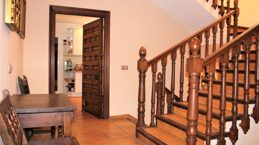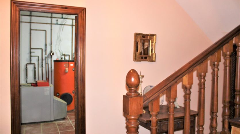 Die Eingangshalle verbindet die verschiedenen Teile des Hauses und führt zu einem großzügigen Wohnbereich sowie zu den Schlafzimmern. Im Untergeschoss befinden sich zwei zusätzliche Schlafzimmer, ein Waschraum, ein Vorratsraum und eine geräumige Garage.