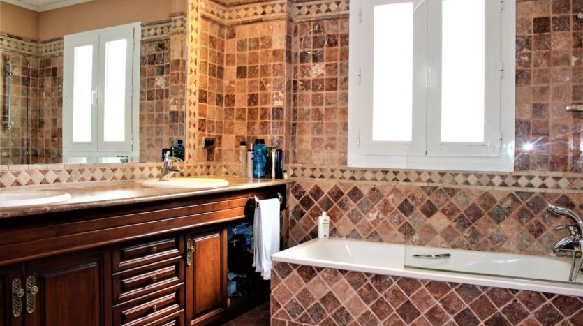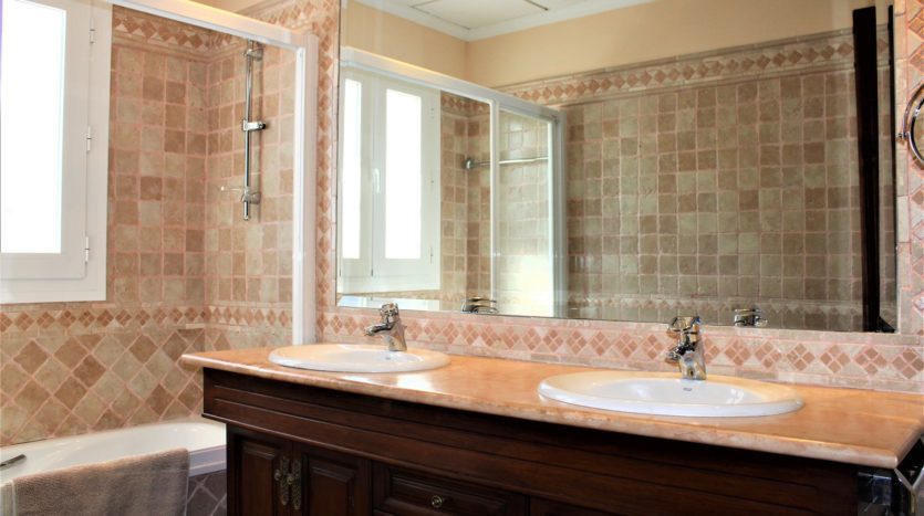 Die Villa verfügt über drei große Schlafzimmer mit eigenem Badezimmer und ein viertes, geschmackvoll dekoriertes Gäste-WC. Im Obergeschoss finden Sie eine gemütliche TV-Lounge und ein Entspannungszimmer.