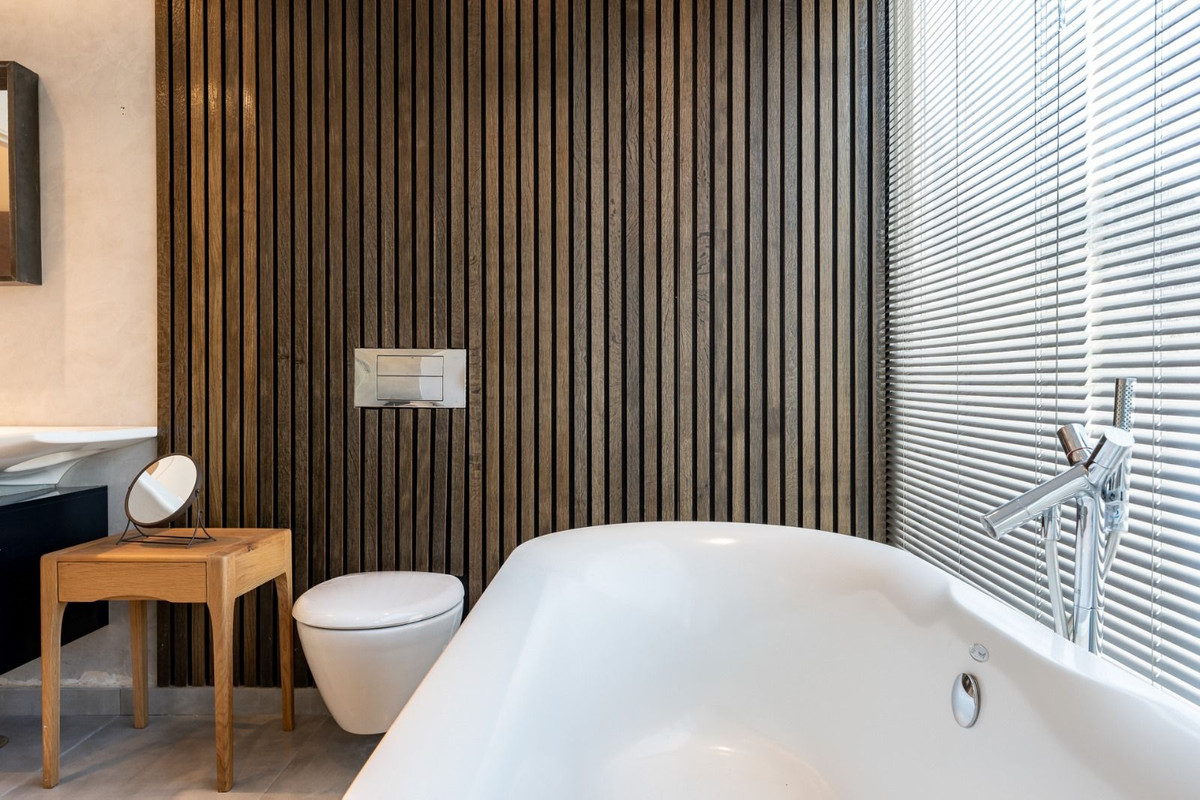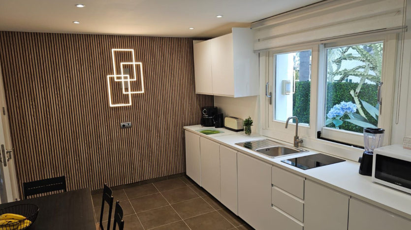 Die durchdachte Raumaufteilung umfasst ein großzügiges Wohnzimmer, eine voll ausgestattete Küche, 4 Badezimmer sowie eine sonnige Dachterrasse und einen privaten Garten, ideal für entspannende Stunden im Freien.