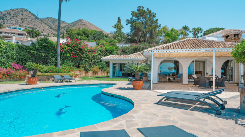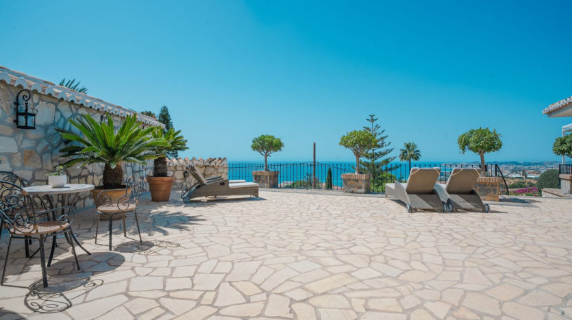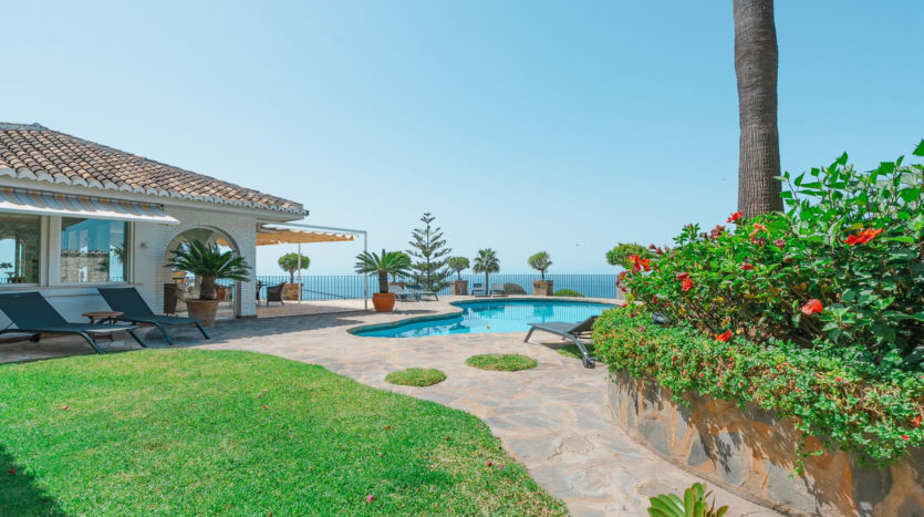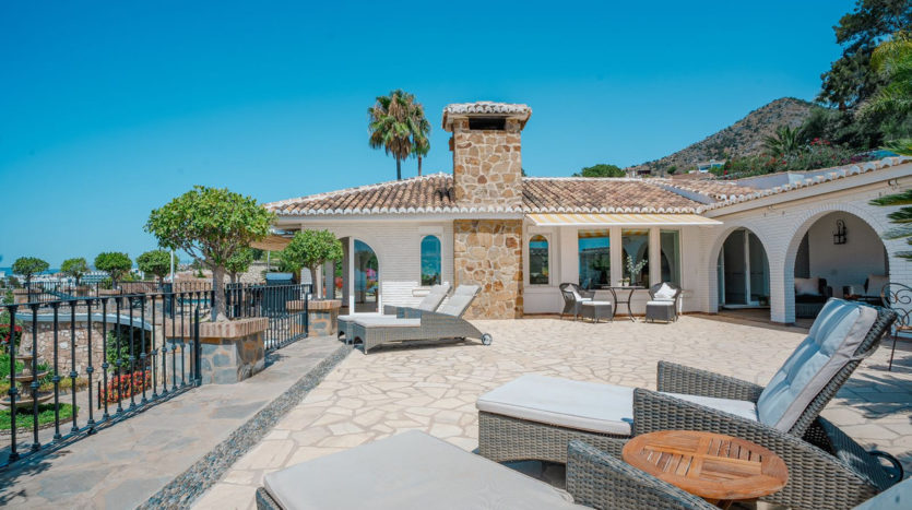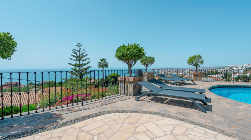 Diese wunderschöne Villa befindet sich in der exklusiven Wohngegend La Capellanía auf einem sehr großzügigen, nach Südwesten ausgerichteten Grundstück, das absolute Privatsphäre, ganztägige Sonne und einen spektakulären Meerblick bietet.