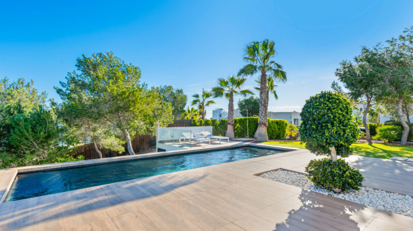 Die Villa liegt in Campoamor auf der Costa Blanca, eingebettet in mediterrane Wälder. Nur 10 Minuten zu den Stränden von Campoamor, Mil Palmeras und Torrevieja. Gute Anbindung zu den Flughäfen Alicante und Murcia.