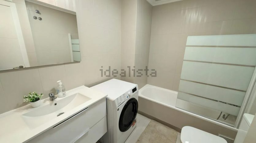 - Badezimmer mit Badewanne, Waschmaschine und stilvollem Interieur