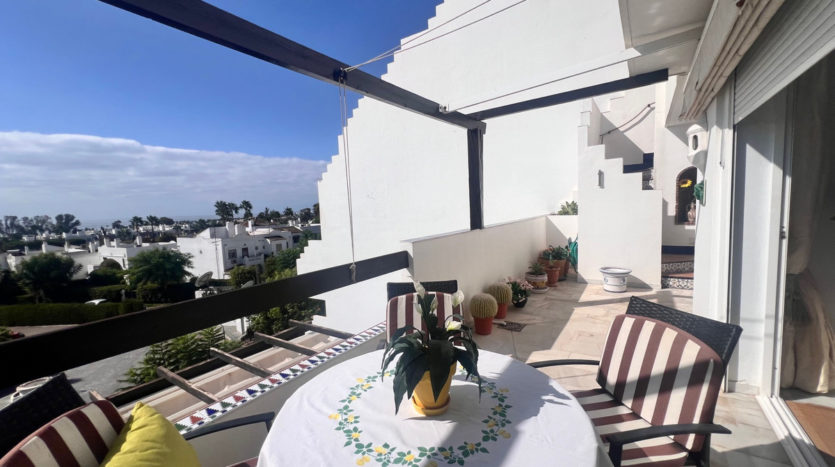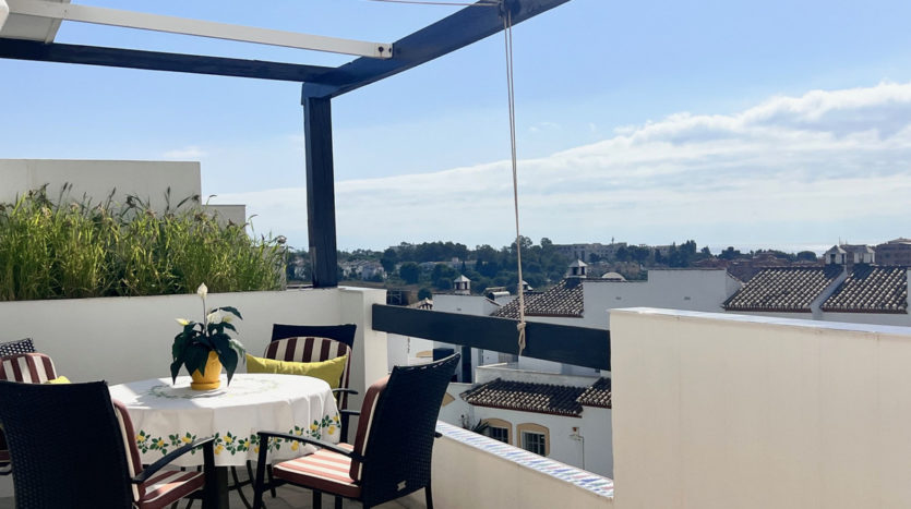 Über eine Treppe erreichen Sie die geräumige Dachterrasse, wo Sie mit einem spektakulären Panoramablick behandelt werden: auf der einen Seite das Mittelmeer und auf der anderen die Sierra Bermeja und den ikonischen Berg La Concha. Bei diesem Solarium gibt es auch einen praktischen Lagerraum.