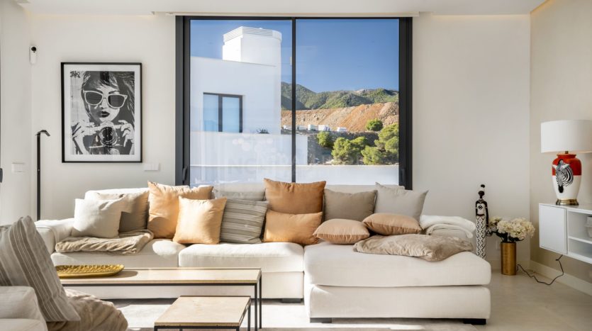 Die drei Schlafzimmer, darunter eine Master-Suite mit einem Spa-ähnlichen Badezimmer und begehbarem Kleiderschrank, strahlen moderne Eleganz aus. Vom Boden bis zur Decke reichende, doppelt verglaste Türen im Hauptschlafzimmer öffnen sich zu einer großzügigen Terrasse und bieten einen nahtlosen Übergang zu den Meerblicken. Die weiteren Schlafzimmer bieten malerische Ausblicke auf die Berge von Mijas und teilen sich ein stilvoll ausgestattetes Badezimmer.