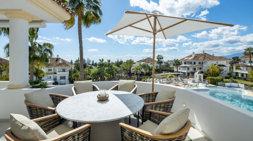 Dieses stilvolle Duplex-Penthouse befindet sich in der renommierten Wohnanlage Monte Paraiso auf der exklusiven Golden Mile von Marbella – einer der begehrtesten Adressen der Costa del Sol. Das Anwesen wurde von Oak Estates umfassend renoviert und überzeugt durch modernes Design, großzügige Raumaufteilung und eine perfekte Kombination aus Komfort, Eleganz und mediterranem Lebensgefühl.