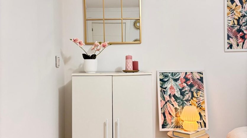 Im Erdgeschoss finden Sie den offenen Wohnbereich und die Küche, während die untere Etage als private Abteilung mit den Schlafzimmern und dem Badezimmer dient.