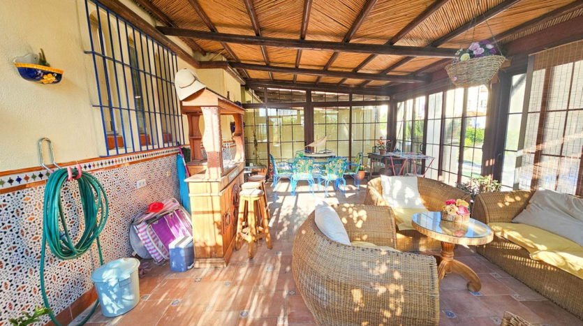 Das Anwesen besticht durch seinen authentischen andalusischen Charakter mit eleganten Marmorböden, traditionellen Zierfliesen und arabesken Gestaltungselementen. Es erstreckt sich über zwei Etagen und bietet einen herrlichen Panoramablick auf das Meer.