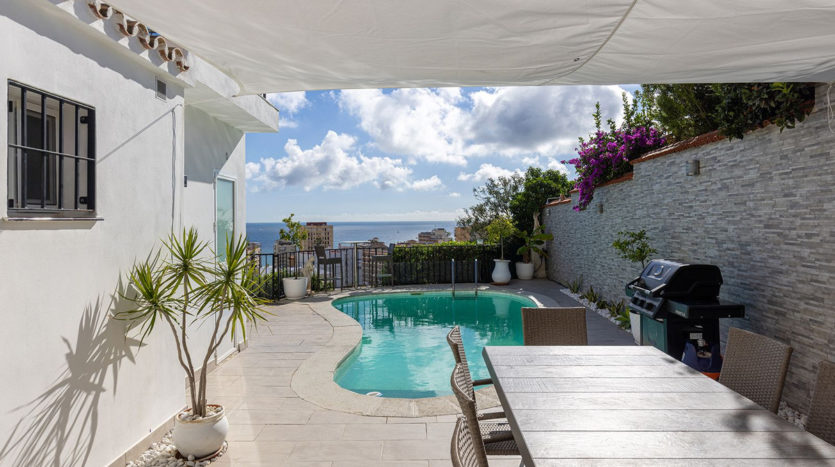 Wunderschöne, komplett renovierte Villa mit 3 Schlafzimmern und Panoramablick auf das Meer in Torreblanca. Entdecken Sie ein bezauberndes mediterranes Paradies mit dieser komplett renovierten, freistehenden Villa mit 3 Schlafzimmern und 5 Bädern in der begehrten Gegend von Torreblanca. Dieses Haus bietet eine harmonische Kombination aus Komfort, Stil und Funktionalität und ist perfekt gestaltet, um ein entspanntes Leben an der Costa del Sol zu genießen. Die Villa ist sorgfältig auf zwei Ebenen verteilt. Auf der Eingangsebene finden Sie einen geräumigen und hellen Wohnbereich, der viel Tageslicht bietet und einen atemberaubenden Meerblick hat. Dieser Raum ist ideal, um Gäste zu empfangen oder ruhige Abende zu genießen, und verfügt über eine Fußbodenheizung für zusätzlichen Komfort.