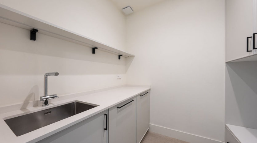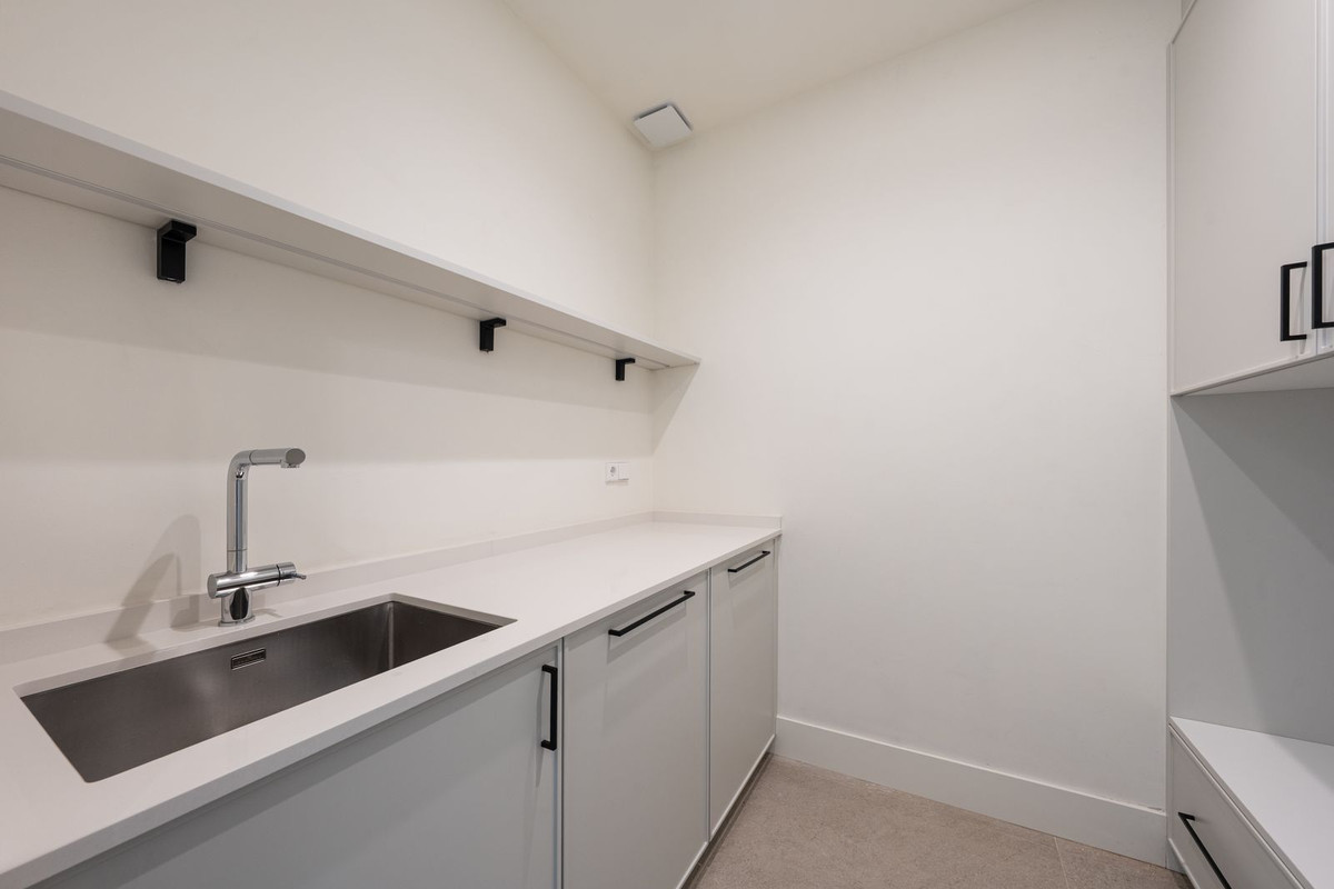 Der großzügige Wohn- und Essbereich im Hauptgeschoss ist offen gestaltet und verbindet Eleganz mit Funktionalität. Eine maßgeschneiderte Küche mit Natursteininsel und separater Vorbereitungszone erfüllt höchste Ansprüche. Bodentiefe Fenster schaffen fließende Übergänge zur Terrasse und zum Infinity-Salzwasserpool, der von tropischer Bepflanzung umgeben ist. Zudem befindet sich auf dieser Ebene ein Gästezimmer mit Bad en suite.