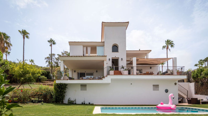 Wunderschöne Villa mit 5 Schlafzimmern, Pool, Garten und Blick auf den Golfplatz Sotogrande auf einem 1.500 m² großen Grundstück. Dieses Anwesen mit hervorragenden Qualitäten ist sehr komfortabel verteilt. Am Eingang befindet sich ein riesiger Saal, in dem Sie als guter Gastgeber fungieren und Ihre Besuche empfangen können. Auf der rechten Seite haben wir 2 sehr geräumige Zimmer mit Einbauschränken und Doppelfenstern, die sich ein komplettes Badezimmer teilen. Auf der linken Seite haben wir zwei weitere Zimmer, ebenfalls sehr geräumig, mit Einbauschränken, Doppelfenstern und 2 eigenen Badezimmern, die absolute Bequemlichkeit, Unabhängigkeit und Komfort bieten.